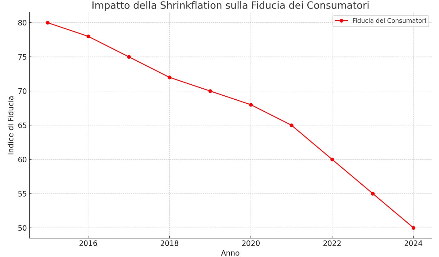 Figura 3: Impatto della shrinkflation sulla fiducia dei consumatori, misurato attraverso sondaggi di soddisfazione.