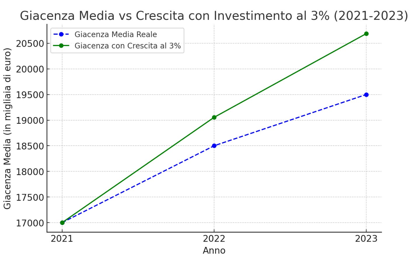 Come si può osservare, un investimento con un rendimento del 3% avrebbe portato la giacenza media a crescere in modo significativo rispetto a lasciarla infruttifera sul conto corrente.